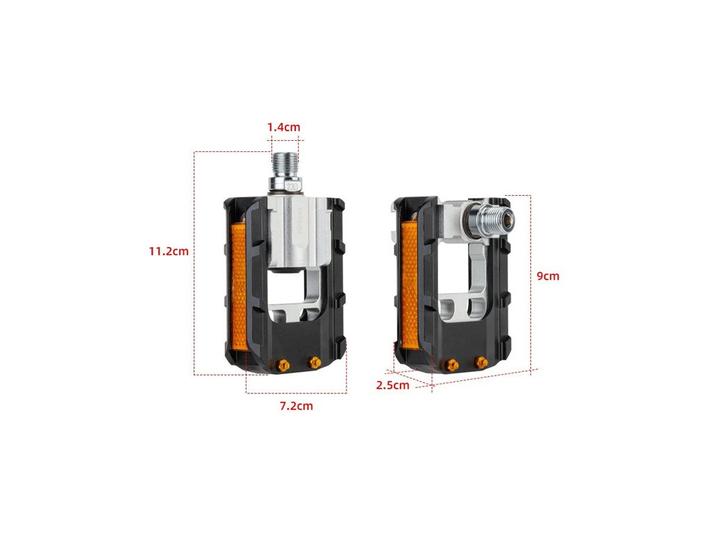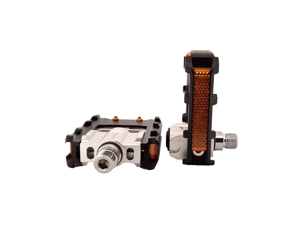 Velmi odolné pedály ze slitiny hliníku, Chrom-Molybdenové středové osy a výstupky proti klouzání bot.