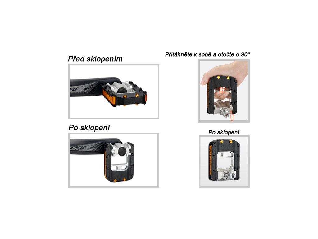 Pedály vám ušetří velmi cenné místo například ve sklepě nebo při převozu kol na nosiči na tažném zařízení, kde pedály a řídítka způsobují největší problém.